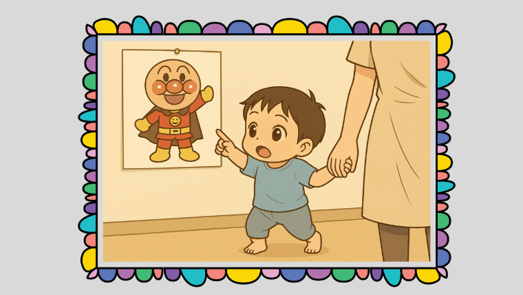 壁に貼られているアンパンマンのキャラを見た子供たちが「あんぱんまん」と口々に言っていたのです。一人ではなく何人も!